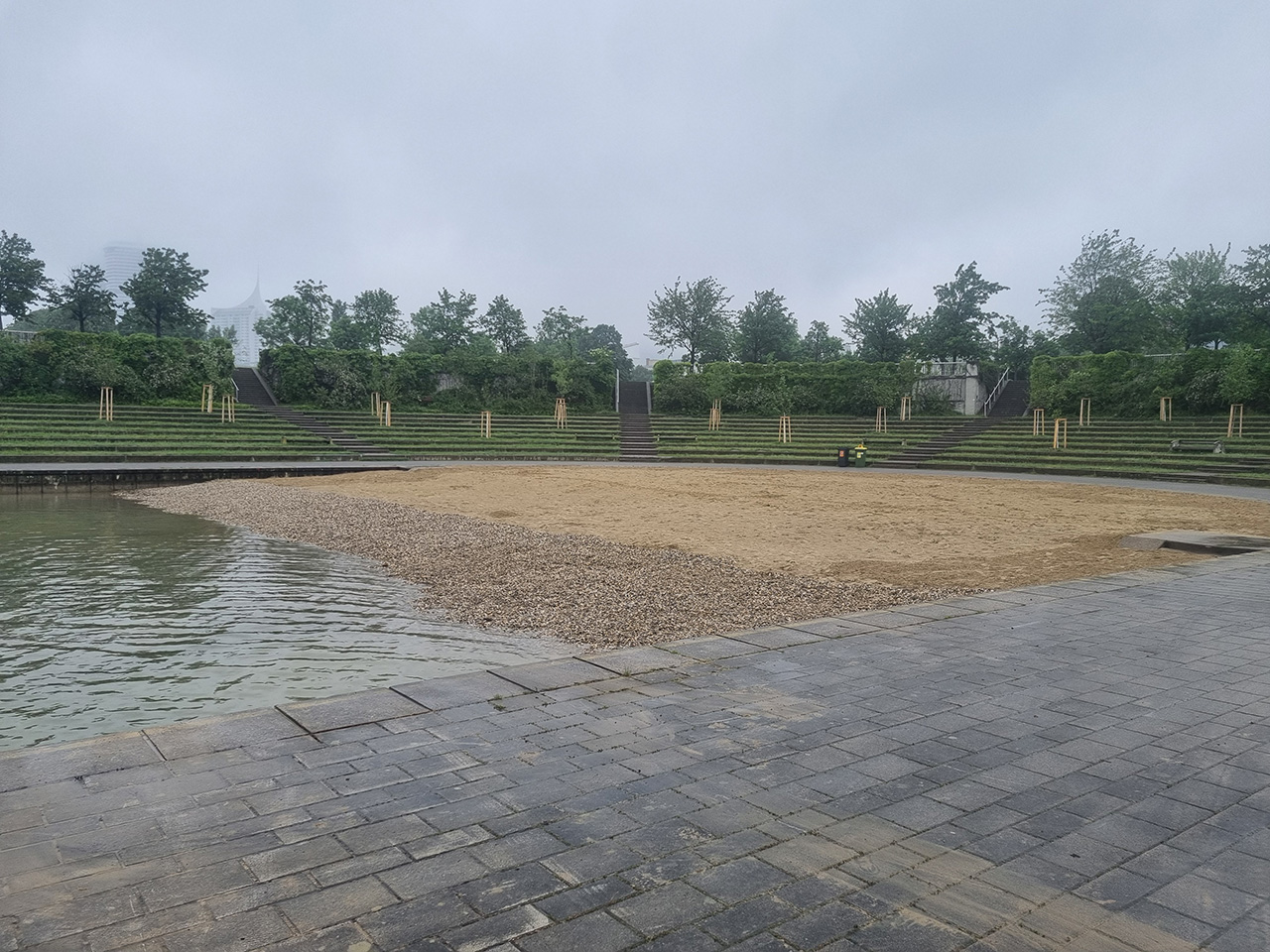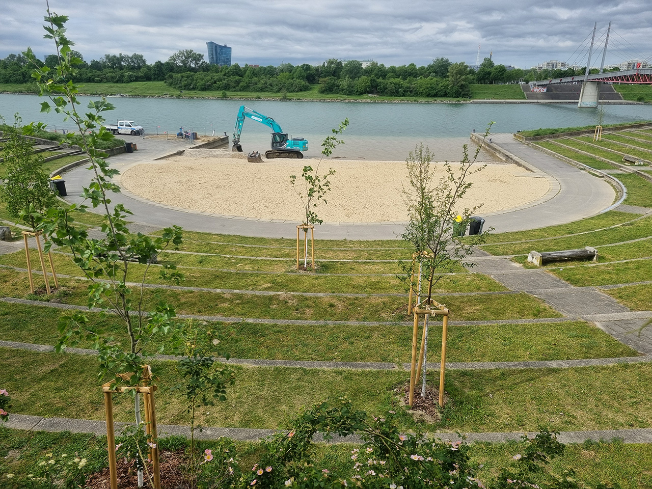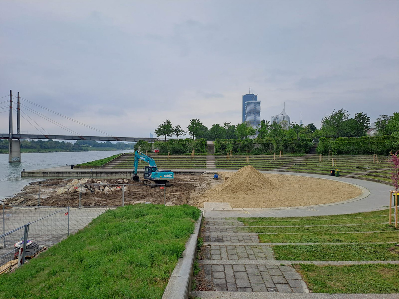 Im Rahmen eines Tief- und Wasserbauprojekts wurde auf der Wiener Donauinsel eine neue Badebucht hergestellt. Die Arbeiten umfassten die Modellierung des Uferbereichs, die Integration eines Sandstrandes mit einer Fläche von rund 1.100 m² sowie die Anlage einer großzügigen Liegewiese. Besondere Herausforderungen lagen in der wasserbaulichen Ausführung und der Sicherstellung einer dauerhaften Uferstabilität. Das Projekt verbindet funktionale Anforderungen mit hoher Aufenthaltsqualität und trägt zur ökologischen Aufwertung des Freizeitbereichs bei.