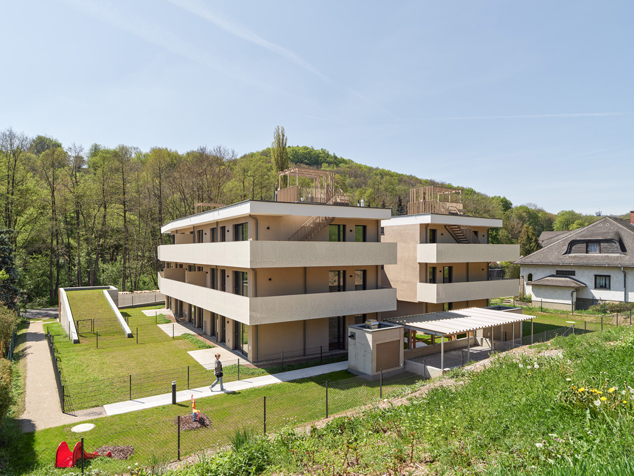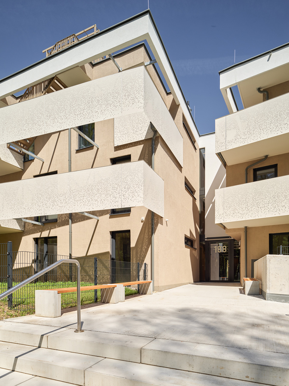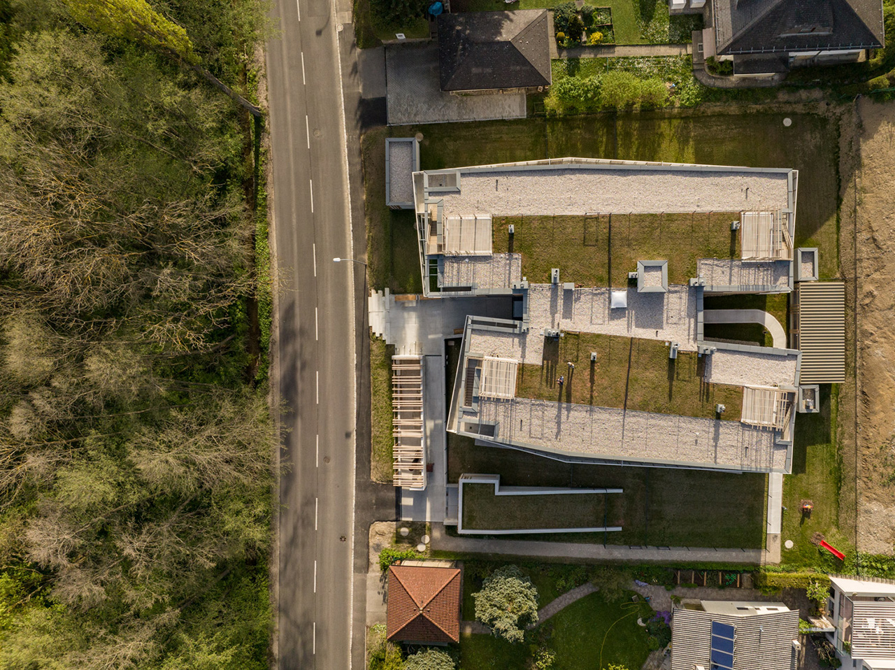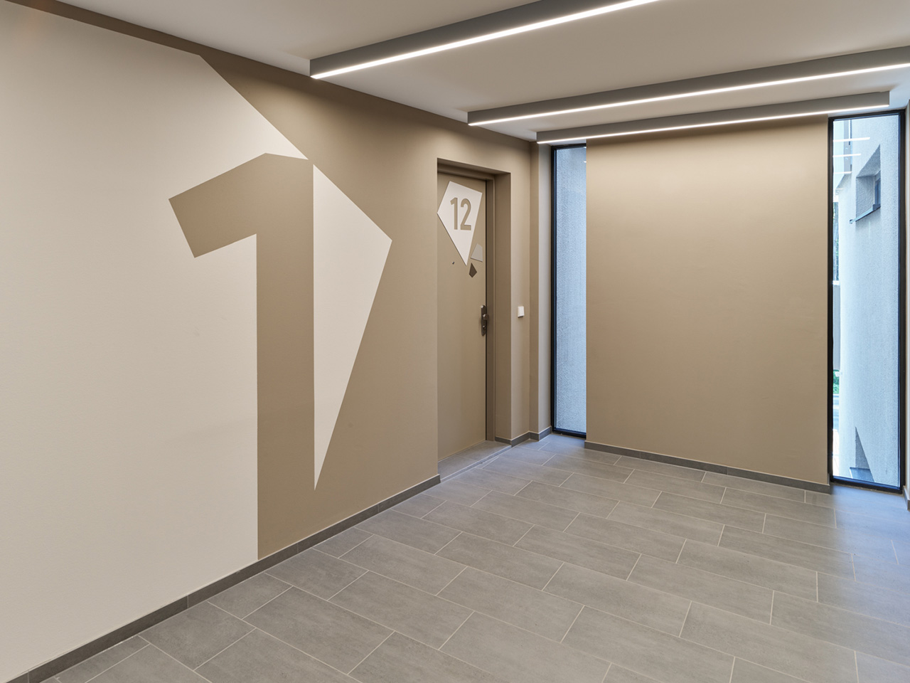 Als Generalunternehmer realisierten wir eine moderne Wohnhausanlage mit 17 Einheiten und Tiefgarage in Grundwasserlage. Die Bauausführung erforderte eine wasserundurchlässige Bauweise sowie präzise Abdichtungsmaßnahmen. Großzügige, umlaufende Balkone und auskragende Bauteile prägen das architektonische Erscheinungsbild. Besondere gestalterische Anforderungen wurden durch individuell lasergefertigte Geländerelemente mit Lochmustern erfüllt. Trotz komplexer Rahmenbedingungen konnte das Projekt in einer kurzen Bauzeit von nur 16 Monaten erfolgreich abgeschlossen werden. Die hochwertige Ausführung und enge Abstimmung zwischen Planung und Ausführung garantierten höchste Qualität in allen Gewerken.
